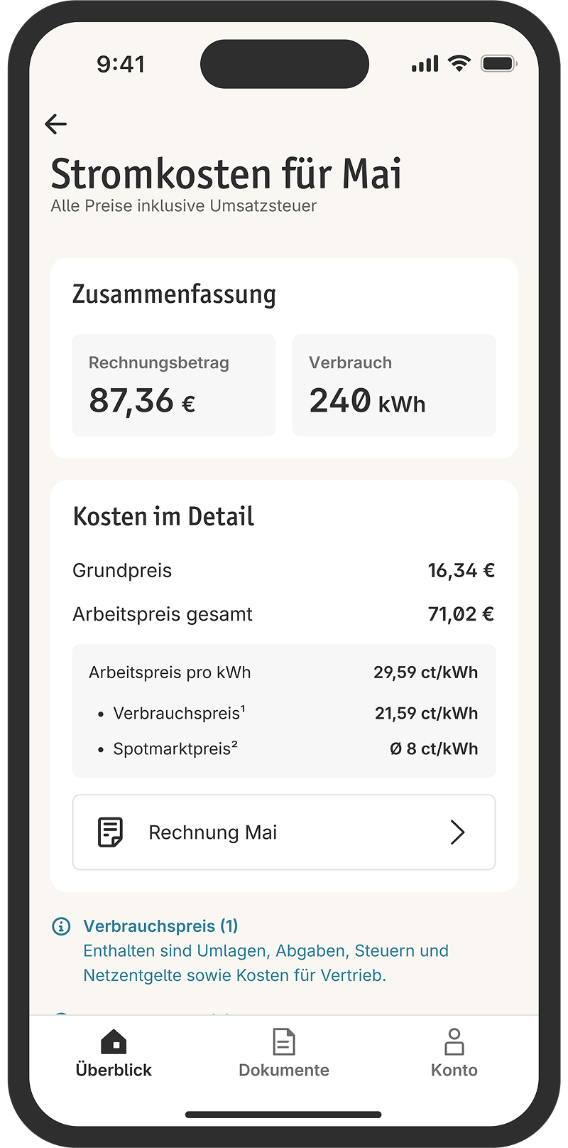 Mit der App habt ihr Strompreise, Verbrauch und Kosten jederzeit im Blick. Klar strukturiert, einfach verständlich und ganz ohne Schätzungen, versteckte Kosten oder Nachzahlungen.Tarif berechnen